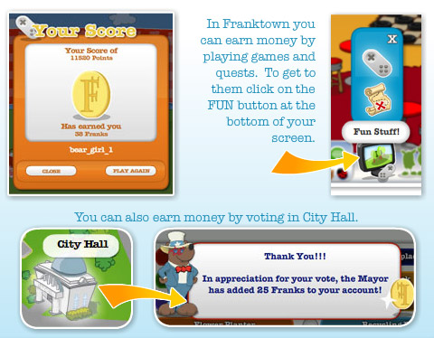 Franktown Rocks is a fun mutliplayer online game for kids 8-12. You can create a character and walk around the city of Franktown and play with other characters. You can play games, make music, complete quests, watch videos, drive cars, buy a pet and dress it up, add rooms and even an elevator to your house. Best of all, this social game (sometimes called an MMOG - which means "Massively Multiplayer Online Game") is totally free to play! So what are you waiting for? Whether you're a New User or a Returning User, you can start making friends and making music today!